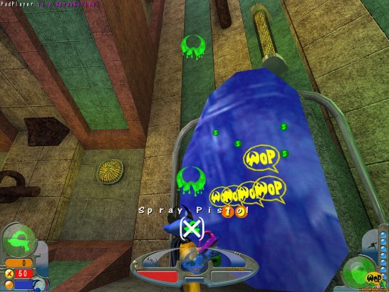 Der Spieler gelangt beim Betreten des Teleporters in den sogenannten Sprayroom, in dem es üblicherweise zwei Spraywalls gibt, an die er für jede eingesammelte Farbpatrone jeweils ein Logo sprühen kann. Die in der Hand befindliche Waffe wechselt beim Betreten automatisch zur Spray Pistol und andere Waffen können nicht mehr benutzen werden. Somit ist der Sprayroom auch eine neutrale Zone, in der sich der Spieler eine begrenzte Zeit aufhalten darf. In der Regel sind das 30 Sekunden. Der Spieler darf jederzeit durch einen weiteren Teleporter wieder zurück ins Spiel, egal ob er Logos gesprüht hat oder nicht.
