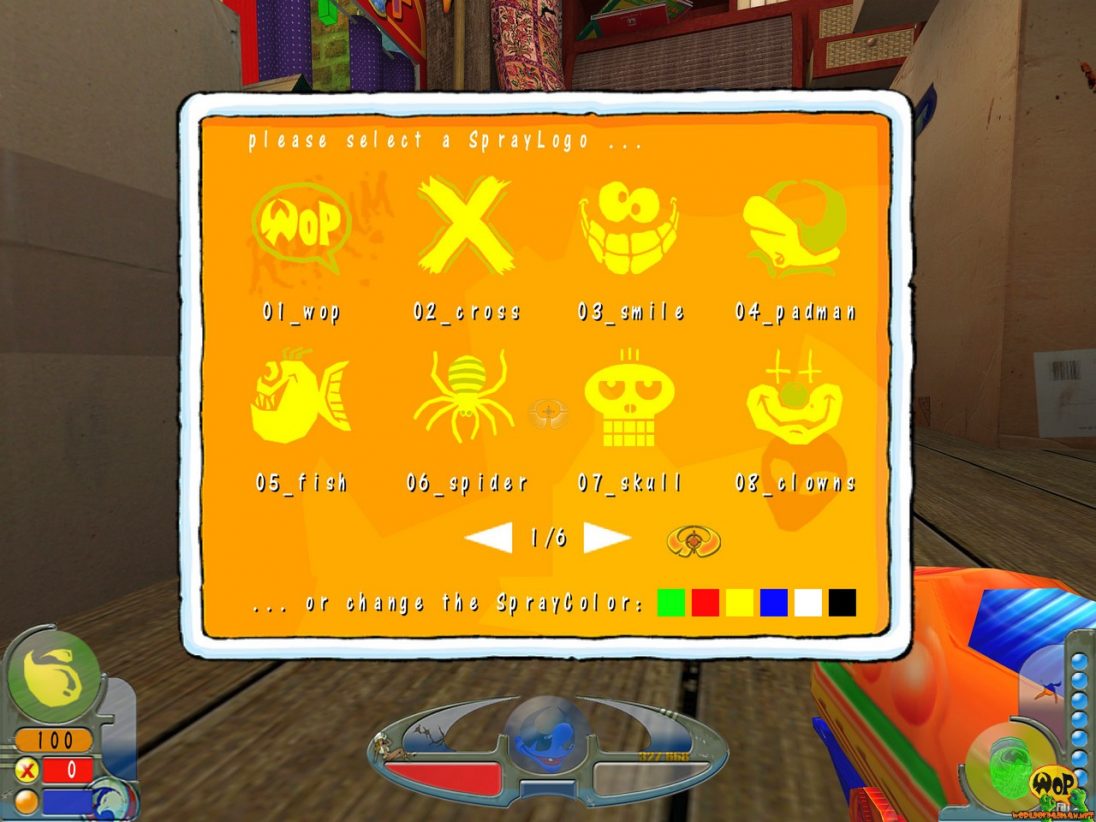 Um den Sprayroom-Teleporter in der Map leichter lokalisieren zu können, wird dieser bei Besitz von mindestens einer Farbpatrone, zusätzlich durch ein Teleporter-Icon, auch durch Wände hindurch, im Spiel hervorgehoben, sofern diese Option vom Spieler in den Einstellungen aktiviert wurde. Darüber hinaus können Form und Farbe der Logos vom Spieler im Menü selbst ausgewählt werden. Dies kann auch während des Spielens nachträglich erfolgen, indem durch Drücken der Taste „Escape“ das Ingame-Menü aufgerufen wird. Unter der Option „Select Logo“ kann die Auswahl erneut erfolgen. Weitere Informationen dazu befinden sich im Abschnitt Menü/HUD. Im Teammodus hingegen ist die Farbe des Spraylogos auf die des jeweiligen Teams festgelegt, also blau oder rot.