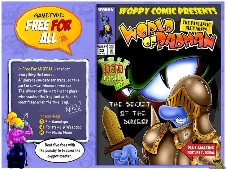ENTE’s PadCastle is, besides PadGallery, part of ENTE’s PadPack for World of Padman. The map represents a small knight’s castle with entrance area, throne room, court, dungeon and various galleries. Some items, like the ViSiONLESS and the iMPERiUS, are well hidden and can only be found in secret areas. The map is based on ENTE’s first PadMap ever, PadCastle for Quake 3 Arena and was also previously released as part of the PadPack for the PadMod for Quake 3 Arena. With each release, ENTE revised his map heavily and re-released it in 2007 for the stand-alone version of World of Padman. This version now is compatible with World of Padman 1.5 and newer and received minor bug fixes and improvements. By the way, PadCrash is no longer part of the PadPack, because this map is already part of the default installation of World of Padman 1.5.