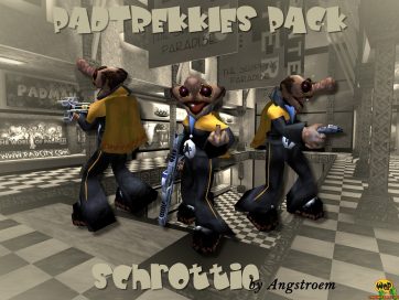 The Padtrekkies Pack contains four alternative Star Trek alike skins for ENTE’s Padman created by Angstroem. With it comes Cpt. Kork, Mr. Spuck, No. 1 and Schrottie. This skins need the player model Padman for Star Trek: Voyager – Elite Force installed before.