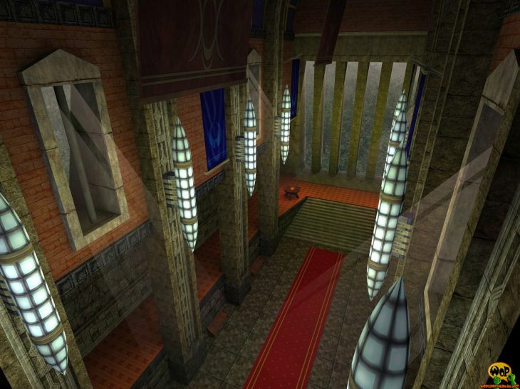 PadHall is ENTE’s second map, which was especially created for the game type Duel of the game Star Wars Jedi Knight 2: Jedi Outcast. It probably represents some kind of cathedral or a throne room. He is not so much sure by himself about that, so maybe it is his living room. It should become an very noble and peaceful room to relax, so friendly colors and expressive lights prevails. PadHall was originally released together with three other duel maps in a so-called PadPack for Jedi Knight 2.