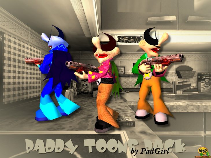 The Paddy Toons Pack #2 contains four new and alternative skins for ENTE’s Padman made by PadGirl in one edition. With it comes PolicePad, PadTramp, Dr. Pad and SeaPad. This skins need the player model Padman for Quake 3 Arena installed before.