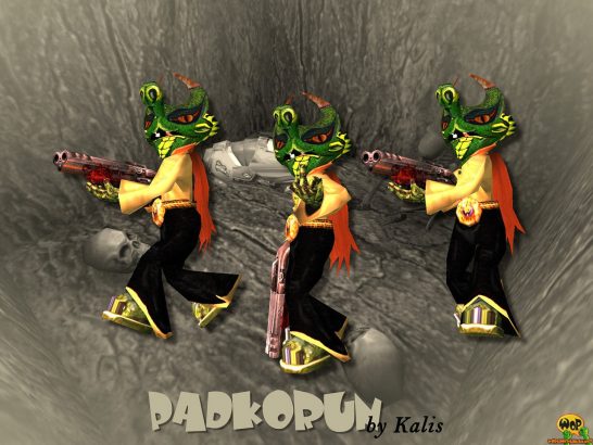 PadKorun is the Cobra in the Padman costume. PadKorun is an alternative skin for ENTE’s Padman made by Kalis and it was a contribution to the legendary Padman skin contest back in the days. This skin needs the player model Padman for Quake 3 Arena installed before. It is available in two resolutions as separate downloads. The version in 512px has a higher resolution and provides a better quality. It is always overwriting the other variant, even though both were installed.