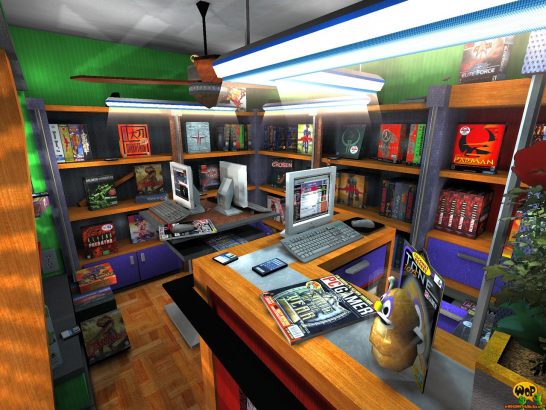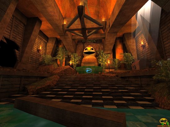 PadShop is ENTE’s ninth map for Quake 3 Arena and was created on behalf of the American computer games magazine PC Gamer. It represents a small computer games shop with a shop counter, walkable shelves and everything that belongs to it. The map contains some gags and hidden areas. It is possible to fly to Mars by utilizing the rocket. Tons of awesome textures and details are enough eye candy to simply spend time just wandering and looking around. Here again, the Swedish band Dieselkopf provides some decent music. It is ENTE’s fourth map with a giants theme, which means that your are not bigger then a grasshopper in there. At the same time it is his last big map for Quake 3 Arena.