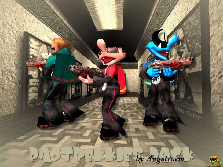 The Padtrekkies Pack contains four alternative Star Trek alike skins for ENTE’s Padman created by Angstroem. With it comes Cpt. Kork, Mr. Spuck, No. 1 and Schrottie, which feel most comfortable in ENTE’s PadSpace. This skins need the player model Padman for Quake 3 Arena installed before.