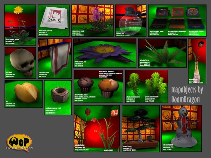 We are currently improving all of our maps, so DoomDragon’s new map objects are a great addition. On the attached screenshot you can see some of his new models.