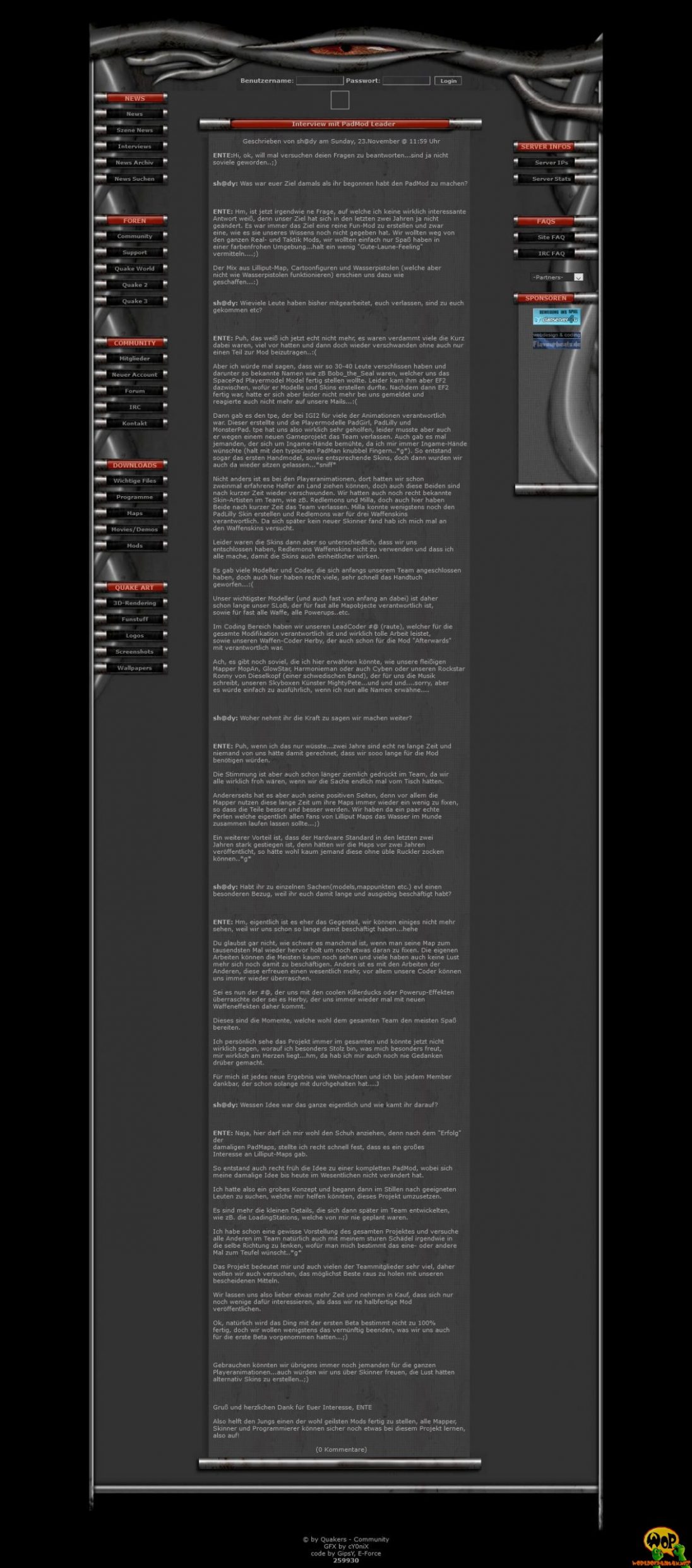 Ein sehr ausführliches Interview von sh@dy mit ENTE zur PadMod, die sich damals gerade noch in der Entwicklung befand. Es geht dabei um das Team dahinter, den aktuellen Stand der Entwicklung und der damit verbundenen Schwierigkeiten. Die originale Webseite, auf der das Interview damals erschienen ist, ist leider nicht mehr online und auch über das Webarchiv ist es nicht mehr aufrufbar.